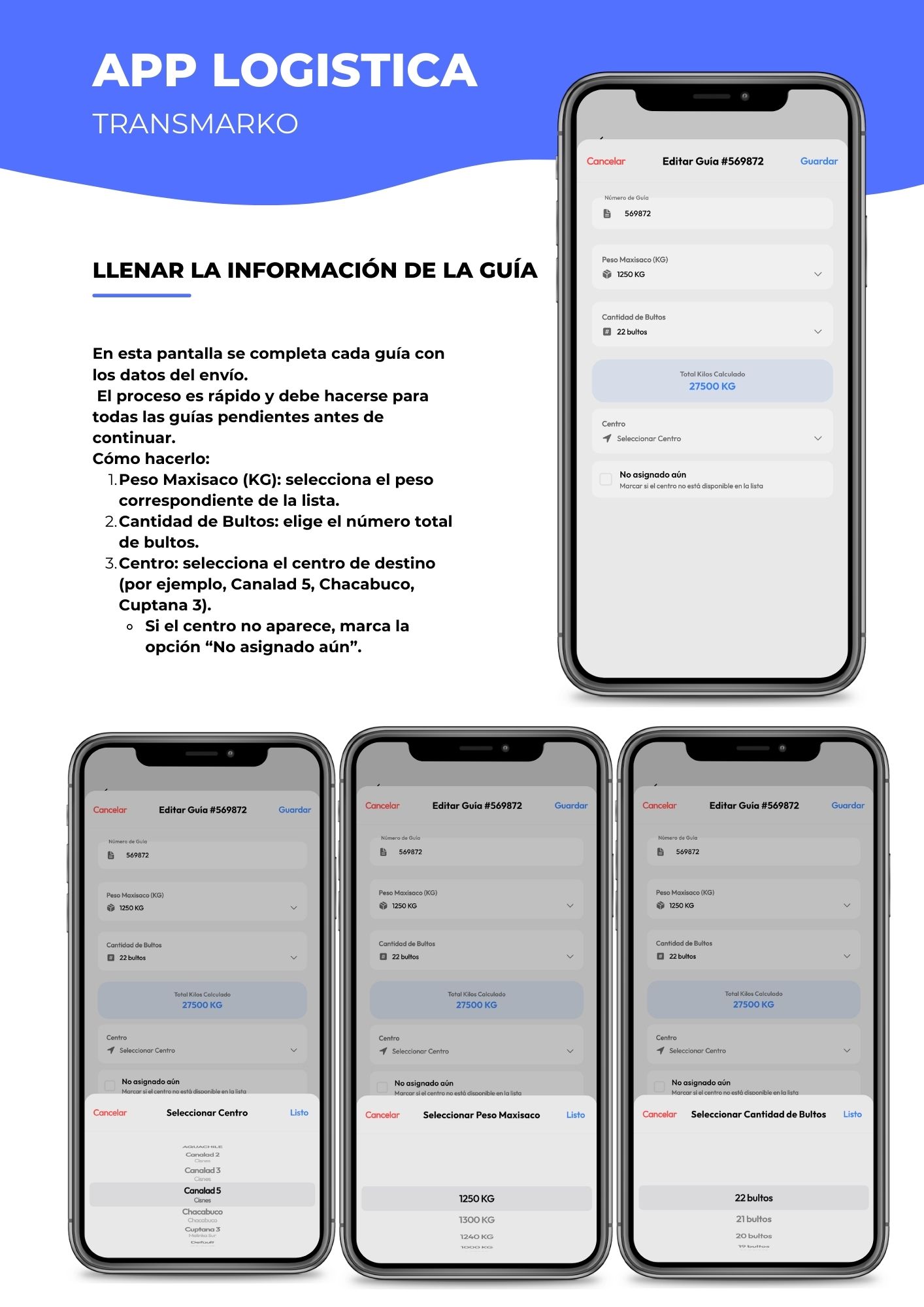 Llenar la información de cada guía
